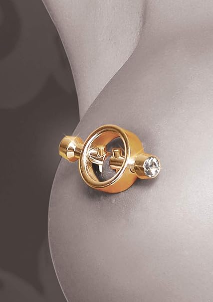 Add a touch of luxury and sensation play to your bedroom adventures with these stunning gold magnetic nipple clamps from Fetish Fantasy. Crafted with a sleek gold finish and accented with sparking faux gems, these clamps are designed to be both visually striking and intensely pleasurable.