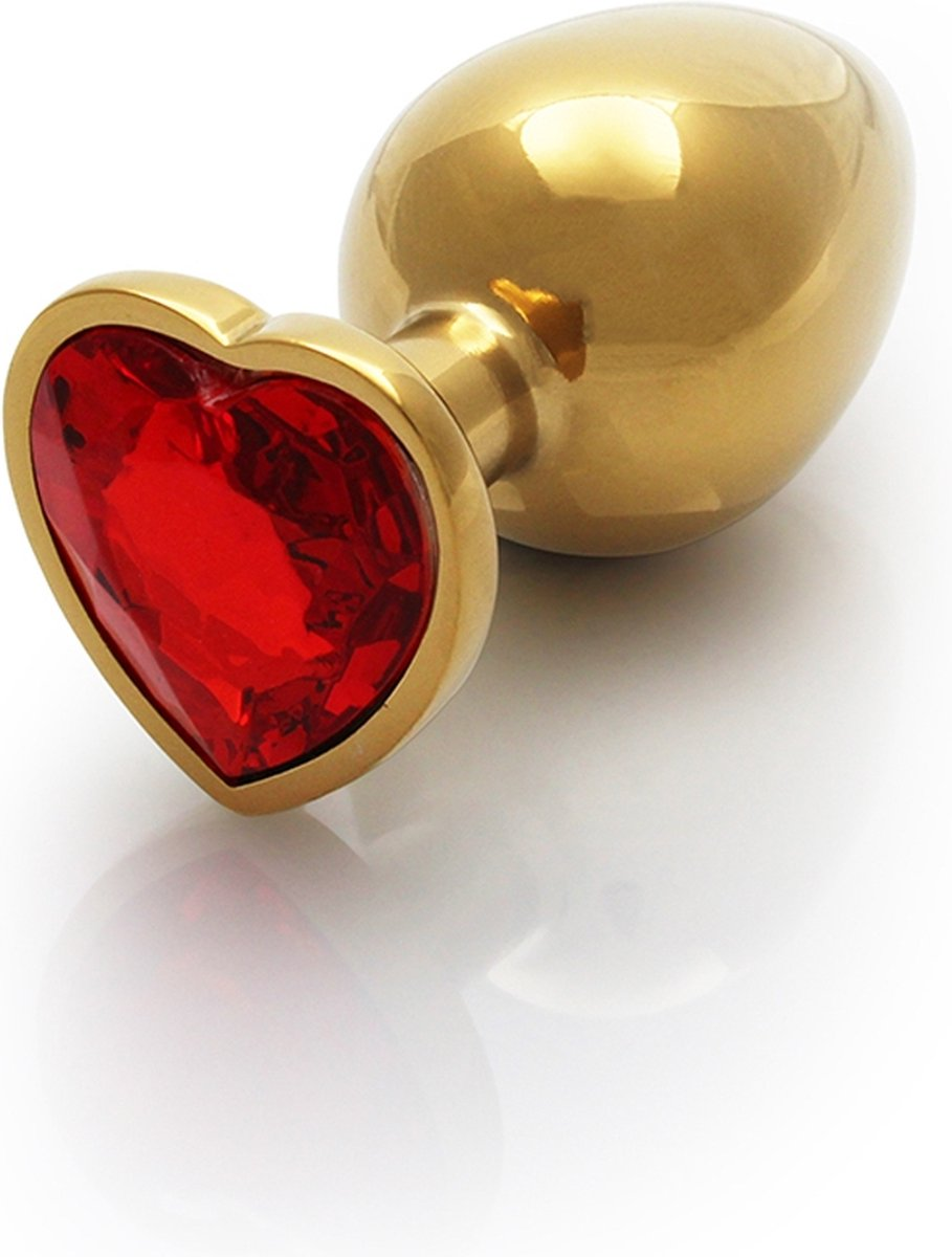 Ouch! Metal Heart Butt Plug – Medium – Gold with Ruby Gem