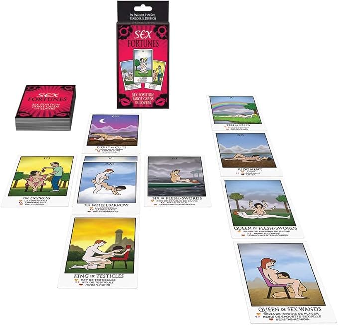 Sex Fortunes blends playful intimacy with a touch of tarot-inspired fun. Deal out a spread just like a fortune teller and “predict” what’s in store for you and your partner-then bring those fortunes to life.